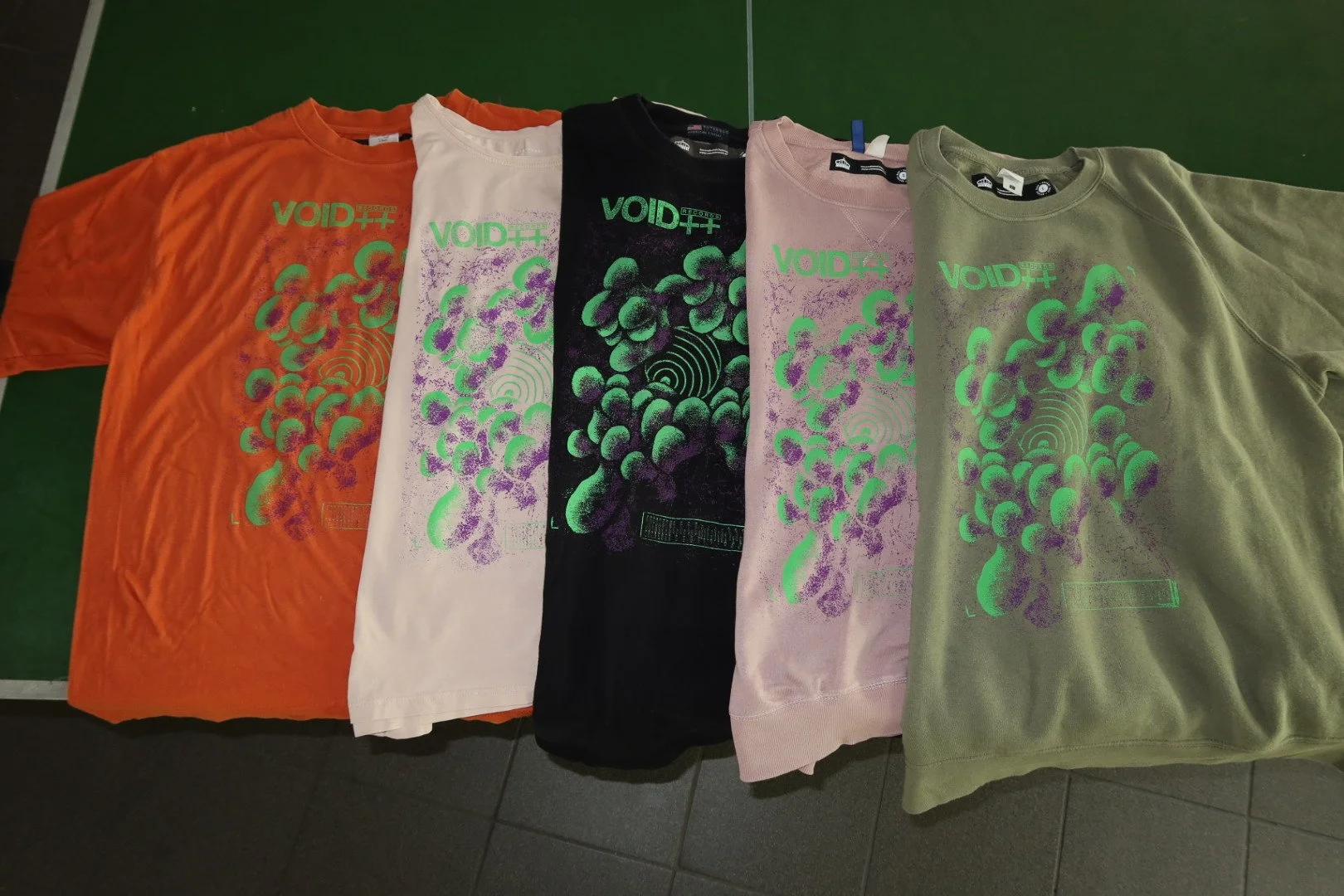 Eigentlich hatte sich das Hannoveraner Musiklabel schwarze T-Shirts gewünscht. Wir konnten sie davon überzeugen, eine Hälfte der Kollektion mit bunten Shirts auszustocken. Das Ergebnis: Trotz oder gerade wegen des farbigen Prints, der je nach Shirt-Farbe immer etwa anders wirkte, kamen die bunten Teile sehr gut an und waren schneller verkauft als die schwarzen Shirts.